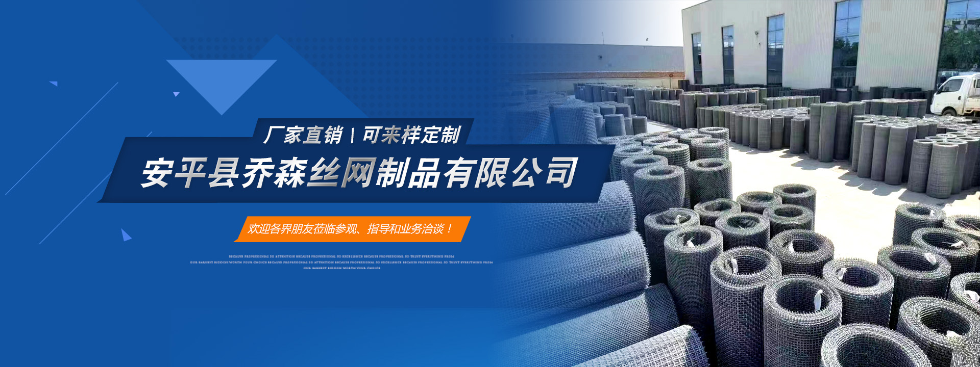 喬森絲網(wǎng)成立于2014年9月,位于中國絲網(wǎng)之鄉(xiāng)-河北省安平縣,是一家專注于生產(chǎn)金屬絲編織網(wǎng)、金屬網(wǎng)板沖孔及相關(guān)金屬裝飾絲網(wǎng)深加工產(chǎn)品的企業(yè)。從一個家庭式的小工坊到公司多年來,一直本著以“質(zhì)量求生存,信譽謀發(fā)展”的生產(chǎn)原則兢兢業(yè)業(yè)穩(wěn)步向前,贏得了 一大批忠實客戶的廣泛贊譽。然騏驥一躍,不能十步,駑馬十駕,功在不舍。我們將以更周到的服務(wù),更過硬的質(zhì)量,不忘初心,為廣大的客戶提供更優(yōu)質(zhì)的服務(wù)。